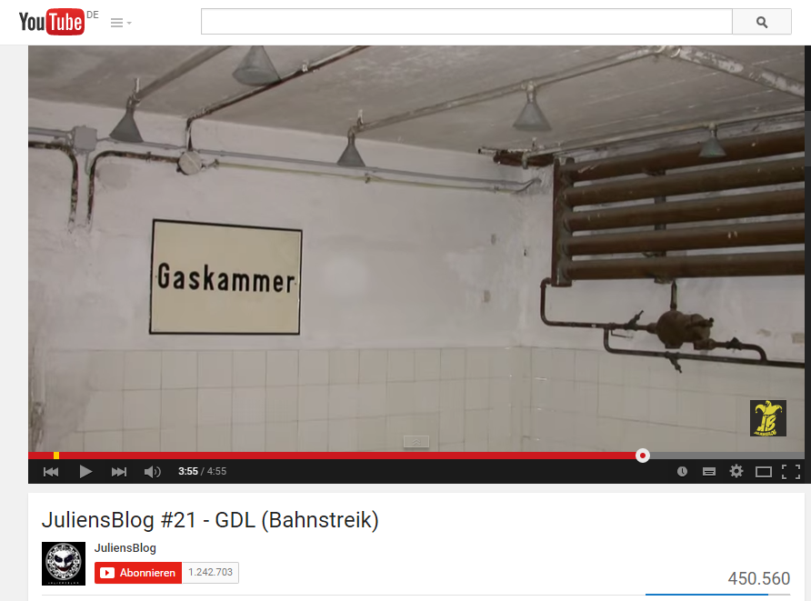 Der Youtuber Julien ist mit seinem Format „Juliensblog“ ein Star der Youtube-Szene. In seinem Video-Format greift er aktuelle Themen auf und verunglimpft, veralbert und beschimpft. Aktuell die streikende Gewerkschaft der Lokführer (GDL). In seinem Video, das immer noch genauso, wie von buzzfeed beschrieben, online ist, überschreitet Julien nicht gelegentlich Grenzen, sondern systematisch und mit dem Ziel der Aufmerksamkeitsgenerierung. Ein Trend, dem man sich entschlossen gegenüber stellen muss, wenn Youtuber Sätze sagen, wie diese: