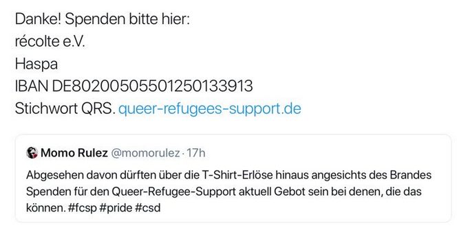 - Die Kontonummer für Spenden für den verbrannten Wagen von Queer Refugees!