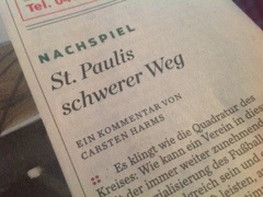 Carsten Harms ist Redakteur beim Hamburger Abendblatt und hat heute in seinem Kommentar „St. Paulis schwerer Weg“ der Diskussion wiedergängerisch den Weg bereitet, ob der FC St. Pauli nicht doch seinen Stadionnamen verkaufen sollte, und gelbe Karten von „Geflügelwurstwarenherstellern“ präsentieren.