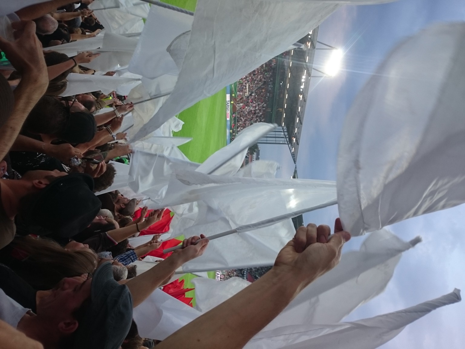Enis Alushi, Marc Rzatkowski und mein Lieblingsspieler Waldemar Sobota saugten den Gladbachern ja jeden Spielaufbau vom Fuß und stoben sofort über die Außen gen Grundlinie. Dass Thy knapp zu spät grätscht, Ratsche dann fulminant einstrahlt – Wumms – mein Gesicht ist nass von dem vielen Bier, das durch die Gegengerade fliegt: Wir haben Hamburger Wetter. Meine Ohren vibrieren bei jedem Gesang, der wuchtig um das fertige Millerntor rauscht. Pokaleuphorie macht sich breit und wird von mir bewahrt.