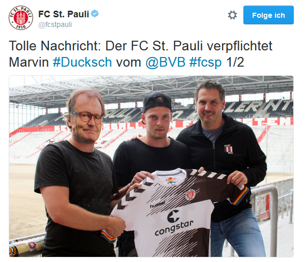 Bei der Präsentation des jüngsten Neuzugangs des FC St. Pauli, Marvin Duksch, ersetzte ein Praktikant der Medienabteilung den im Urlaub abwesenden Cheftrainer Ewald Lienen.