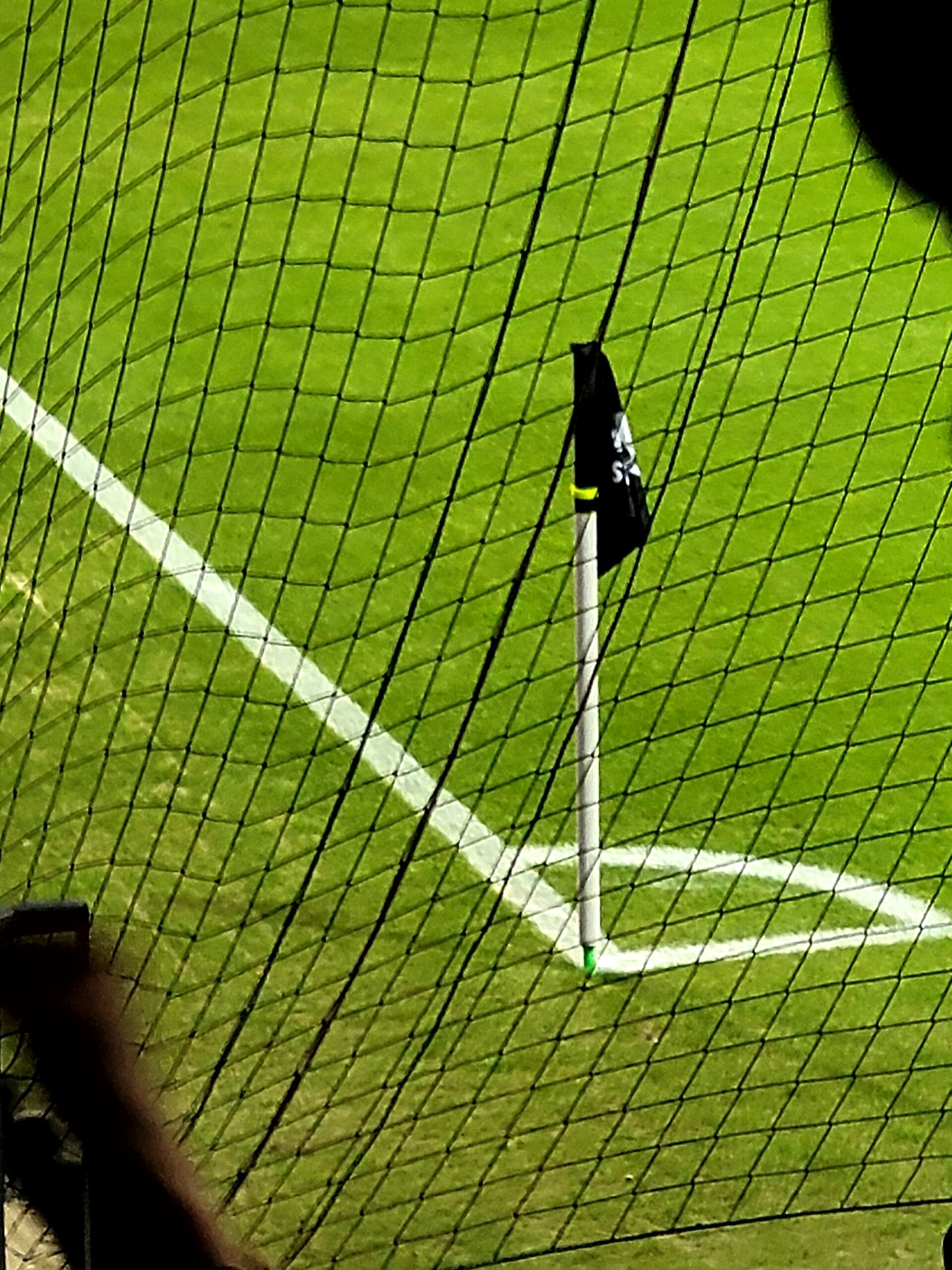 „Durch das neue Netz ist das Ballfangnetz hinter dem Tor überflüssig geworden. Dieses bestand aus mehreren Masten, an denen ein Fangnetz installiert war. Diese Konstruktion – so die Annahme – behinderte die Sicht mindestens so sehr wie das neue Netz.
