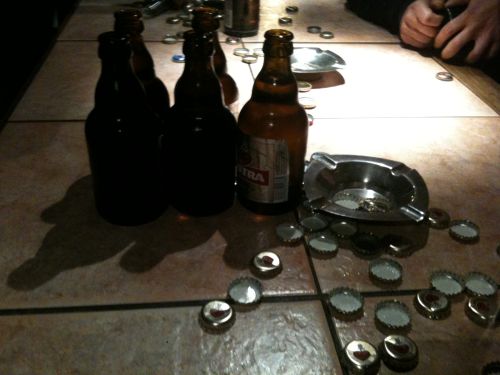 Es war geradezu unmöglich, während der 90 Minuten gegen Koblenz in Ruhe ein Bier zu trinken, so ab der 40. Minute zumindest. Soviele Bierduschen habe ich lange nicht mehr abbekommen. Danach wurde dann auch lange gefeiert, nun lief das Bier ungestörter die raue Kehle und befreute die tanzende Seele. Ein paar Koblenzer waren noch zu trösten – und Geschichten auszutauschen, da vor der Domschänke.