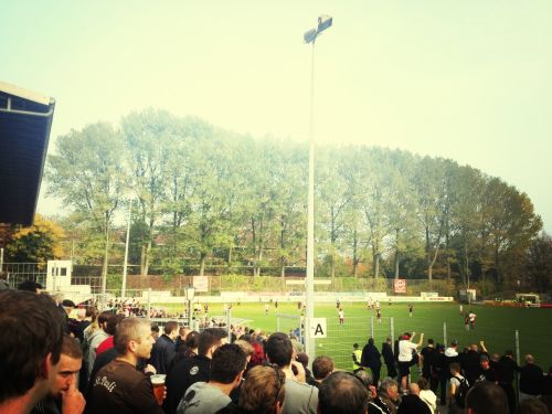 Begonnen hatte der Sonntag mit strahlendem Sonnenschein und diesem komischen Gefühl, dass dieses Wohlfühlklima fehl am Platze ist. Ist ja immerhin Oktober. Auswärts ging ais privaten Gründen nicht, also beschloss ich, bei diesem strahlenden Sonnenschein, den Boys in Brown via Liveticker die Daumen zu drücken und gleichzeitig der Adolf-Jäger-Kampfbahn einen meiner seltenen Besuche abzustatten (wenn die Herren spielen, bin ich selten da).