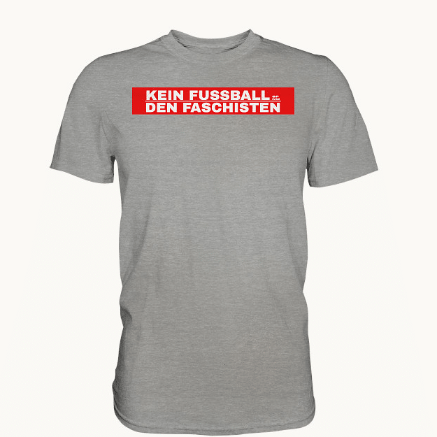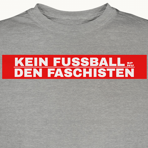 Deswegen habe ich mir ein T-Shirt designt, das unseren Wahlspruch auf der Gegengeraden aufnimmt. Es ist bei meinem Shirt-Kampagnenpartner Seedshirt bestellbar: „Kein Fußball den Faschisten“ Soli Shirt hier bestellen.